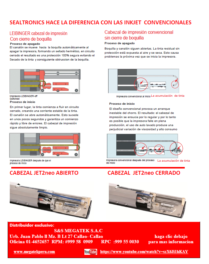 La impresora JET 2 NEO es la mejor opcion de inversion de bajo costo, que usted pueda tener, con capacidad de imprimir hasta 4 renglones, tiene incorporada el exclusivo sistema de cierre de boquilla con la cual se evita costosas reparaciones por obstrucciones y gastos de solventes por limpiezas de cabezal de impresion, que es muy comun en las inkjet convencionales.
